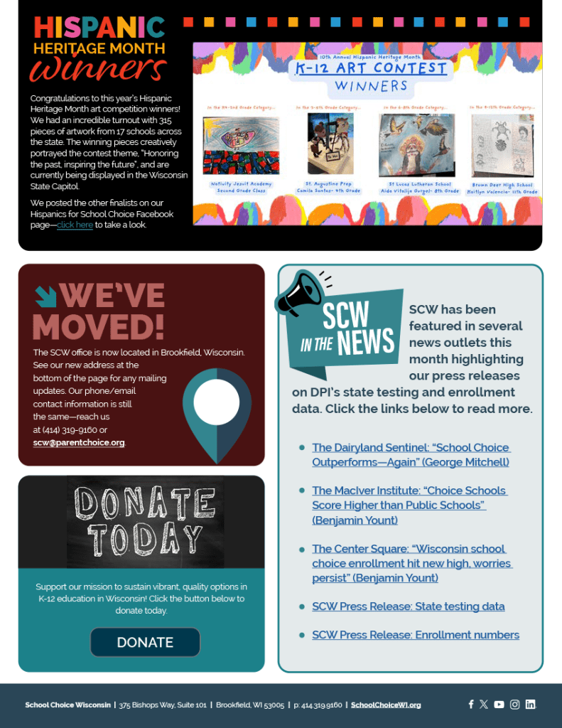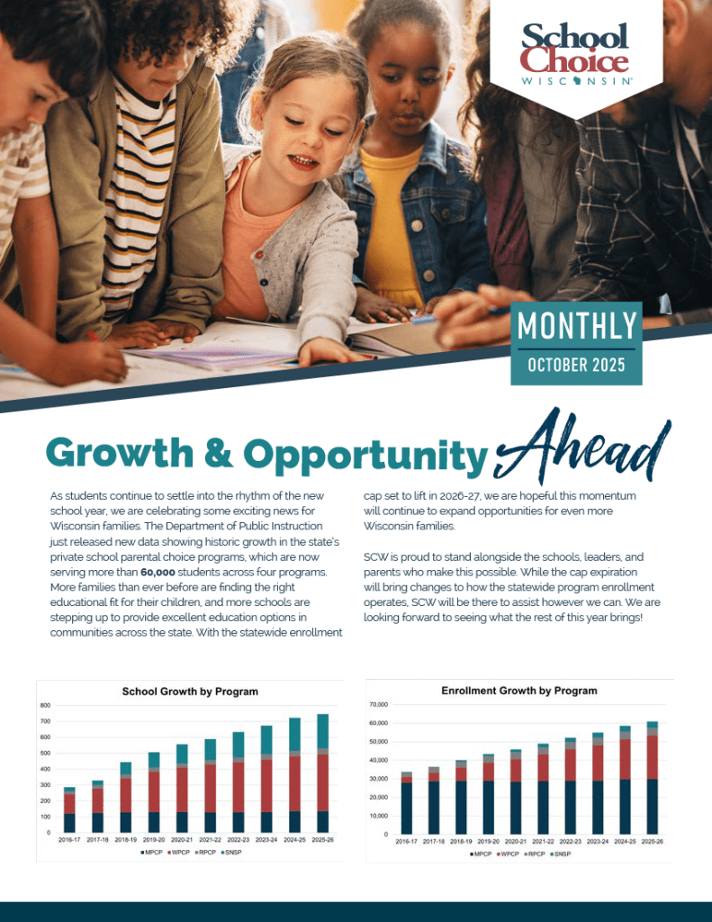 Download School Choice Wisconsin’s latest newsletter: SCW Monthly – October 2025, Volume 14.